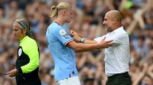 گواردیولا درباره واکنش خود به خرید هالند گفت: بگیریستن مدیر ورزشی سیتی با من صحبت کرد و به من گفت که ارلینگ هالند را به خدمت گرفته است. این مکالمه دو ثانیه بیشتر طول نکشید زیرا به او گفتم "خب باشه!" ما مهاجم بزرگی مثل گابریل ژسوس را داشتیم، اما اگر شانس به خدمت گرفتن کسی مثل هالند وجود دارد، چرا که نه!