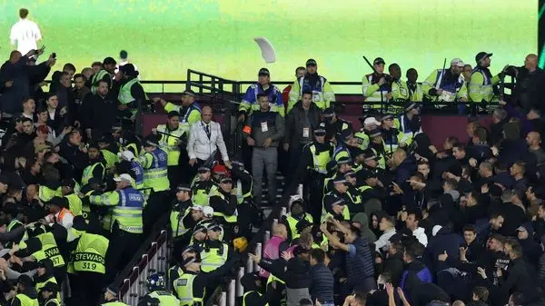 در بازی وست هام مقابل آندرلخت درگیری شدید میان هوادارن و پلیس رخ داد.