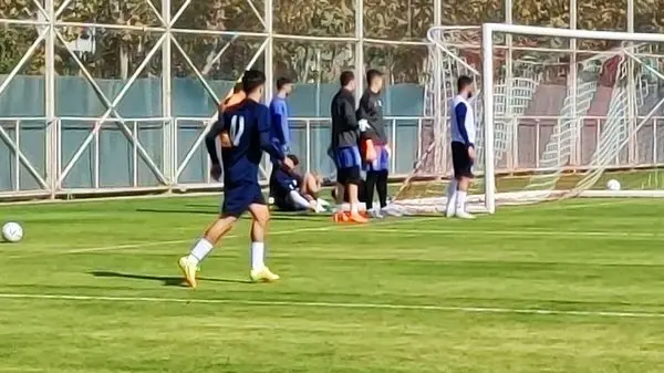 *پس از گرم کردن بدنها بازیکنان به ارسالهای کوتاه از جناحین و ضربه زدن به سمت 2 دروازه مشغول شدند.
