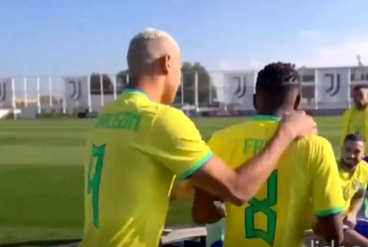 به گزارش رکنا، مهاجم تیم ملی برزیل ریچالیسون هنگام گرفتن عکس فرد را از جای خود بلند میکند چرا که او جای نیمار نشسته بوده. ستاره منچستریونایتد پس از بلند شدن با هم تیمی خود الکس تلس شوخی میکند و سپس دستکشهای رافینیا را که میان این دو نشسته گرفته و با ستاره تاتنهام ریچارلیسون شوخی میکند.