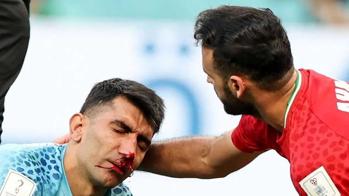 به گزارش رکنا، در جریان دیدار روز گذشته تیم ملی ایران مقابل انگلیس، علیرضا بیرانوند دروازهبان تیم کشورمان در برخورد با سید مجید حسینی مدافع کشورمان از ناحیه بینی مصدوم شد و زمین مسابقه را ترک کرد و جای خودش را به سید حسین حسینی دروازهبان دوم تیم ملی داد.