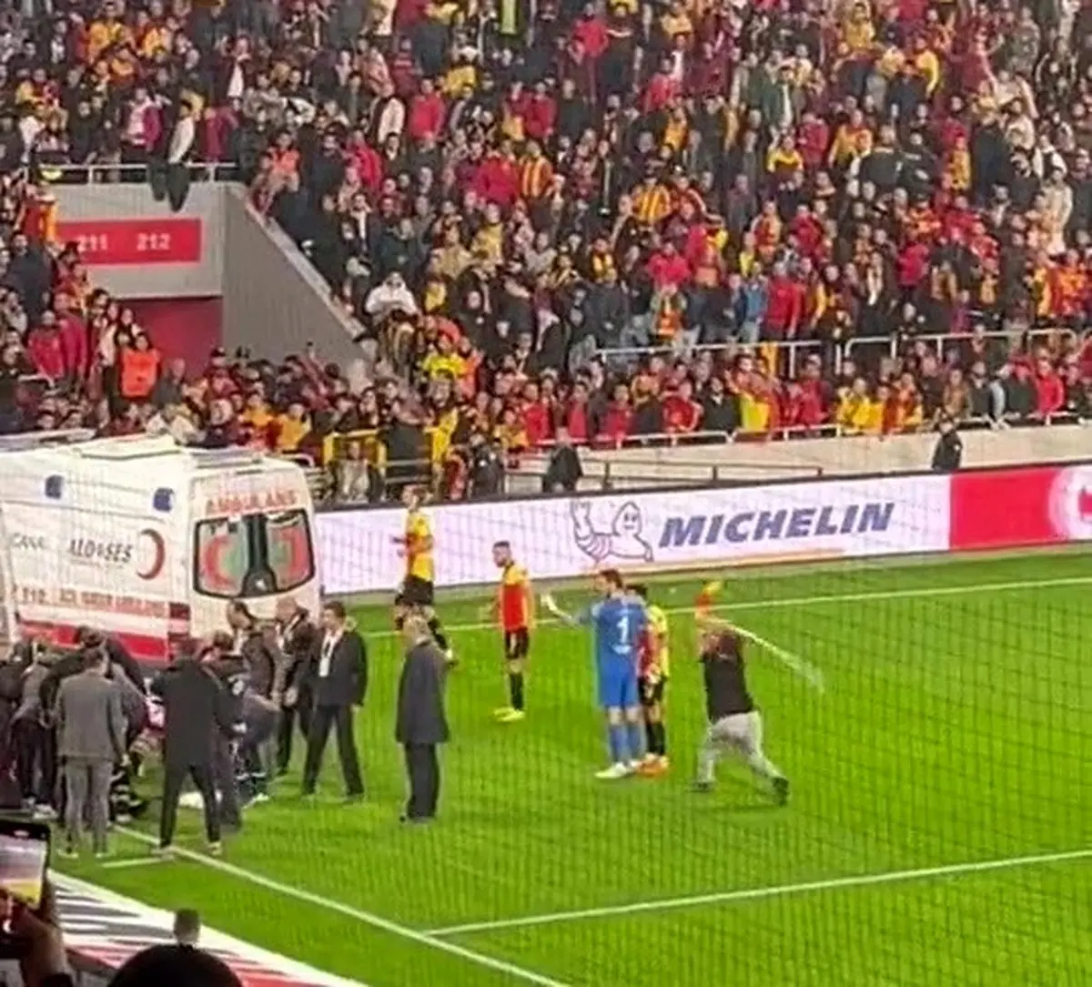 کار به جایی رسید که آمبولانس برای انتقال مصدومان وارد زمین شد و دروازهبان آلتای برای بررسی آنها کنار آن رفت. همین موقع بود که یک هوادار وارد زمین شده و با کندن پرچم کرنر به او حمله ور شد.