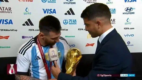 پس از پایان اهدای جام، مسی در مصاحبه با خبرنگار TyC Sport، نگاهی به جام جهانی انداخت و گفت: این جام، بهترین و زیباترین چیزی است که وجود دارد؛ ببین چقدر زیبا و ناز است!