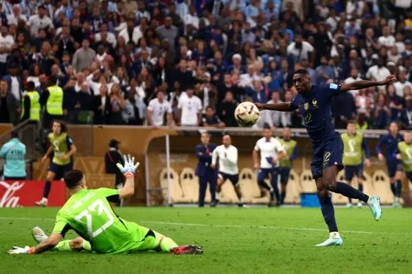 مارتینز در نخستین ضربه، بار دیگر مغلوب کیلیان امباپه شد اما هنرنماییاش را از ضربه کومان شروع کرد. فوقستاره ضربات پنالتی بازیهای ملی آرژانتین با خواندن دست ستاره بایرن مونیخ، با یک واکشن تماشایی ضربه این بازیکن را دفع کرد تا آرژانتینیها پیش بیفتند. این گلر که مردم کشورش امید زیادی به مهار ضربه شوآمنی بازیکن جوان فرانسه داشتند، با بازی خوانی خوبی که انجام داده بود به سمت توپ حرکت کرد اما ضربه پنالتی وی راهی به درون چارچوب نداشت به بیرون روانه شد. پس از این اتفاق مارتینز با حرکات موزون خودش روحیه فرانسویها را نابود کرد!