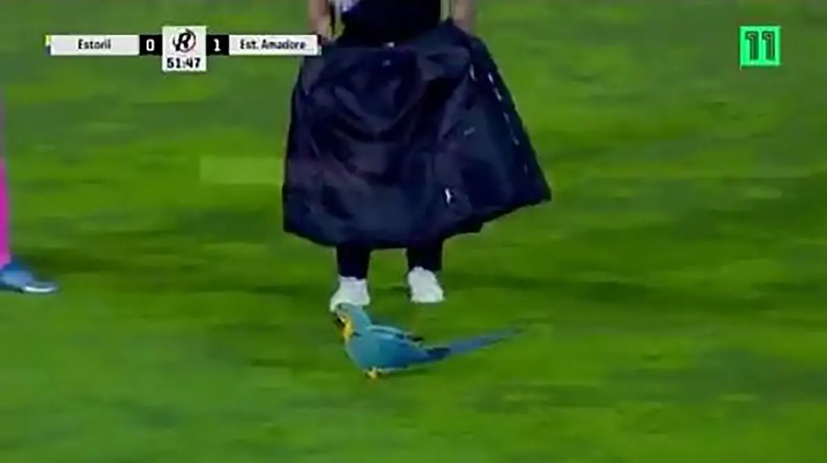 رکنا: یک مسابقه فوتبال در پرتغال بخاطر حضور یک طوطی در زمین برای دقایقی متوقف شد.