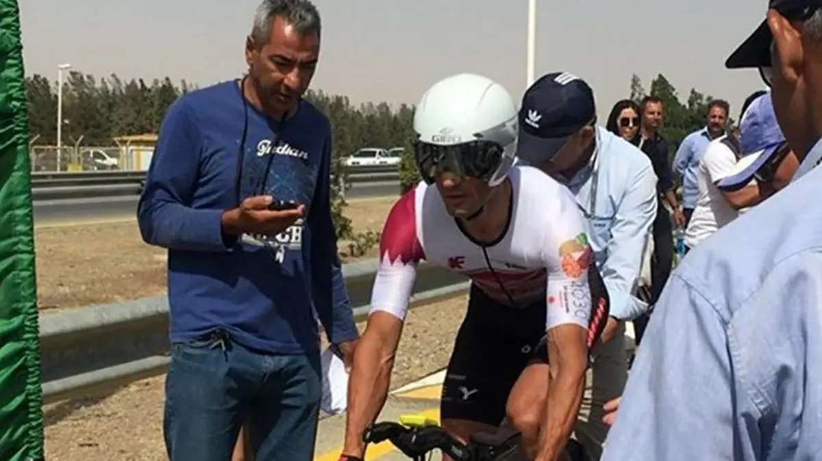 *فیلم مربوط به دیر رسیدن رکابزن ایرانی به خط شروع مسابقه است.