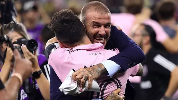 ظاهر جدید و جذاب دیوید بکام در شب قهرمانی تیمش با مسی + عکس
