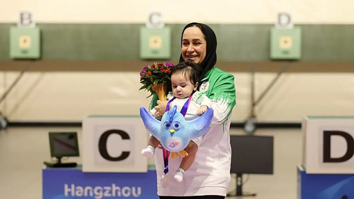 رکنا: نایب قهرمان تیراندازی بازی های پاراآسیایی به همراه نوزاد سه ماهه خود روی سکو رفت.