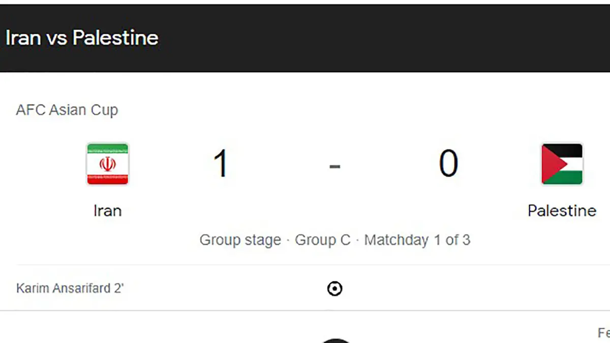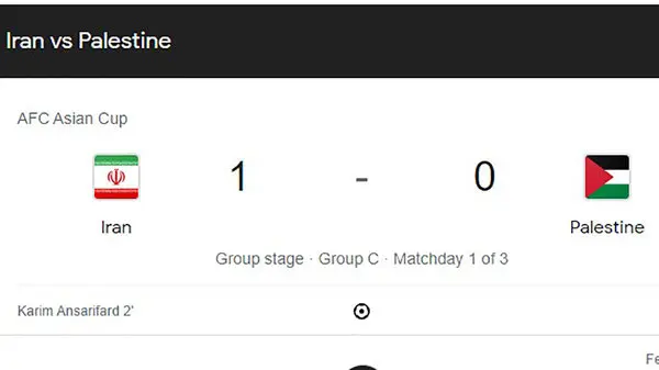 فیلم گل اول ایران به فلسطین در دقیقه 2 توسط کریم انصاری فرد