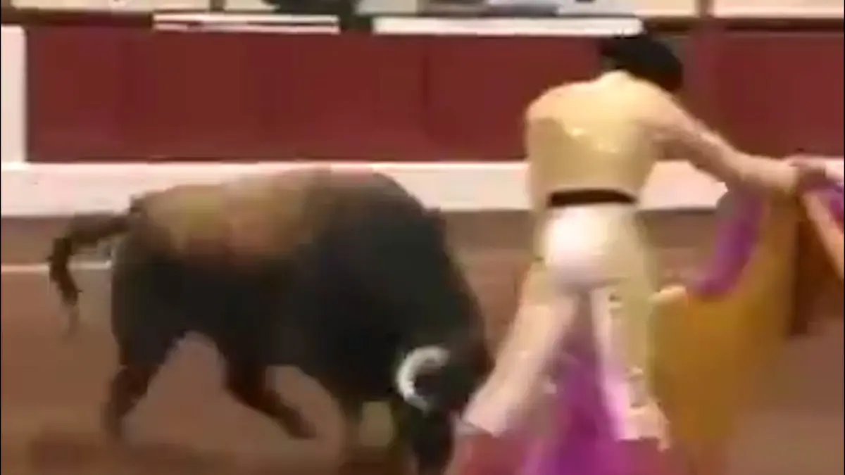 رکنا:یک گاو باز حرفه ای توانست صحنه ای عجیب و نادر در دنیای گاوبازی خلق کند.