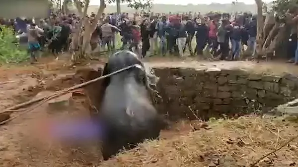 رکنا: مردم هند یک فیل را به طرز جالبی از داخل چاه نجات دادند.