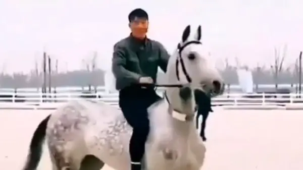 حرکت بی نظیر برای سوار شدن به اسب + فیلم و عکس