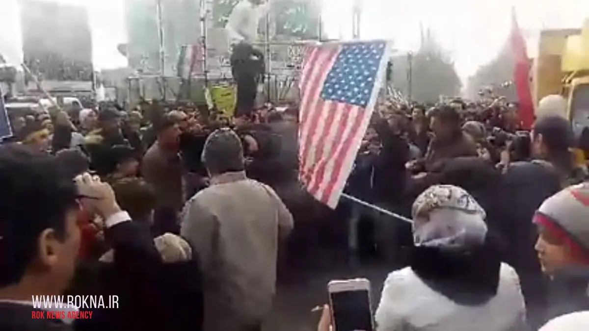 پرچم آمریکا در راهپیمایی ۲۲ بهمن به آتش کشیده شد+فیلم