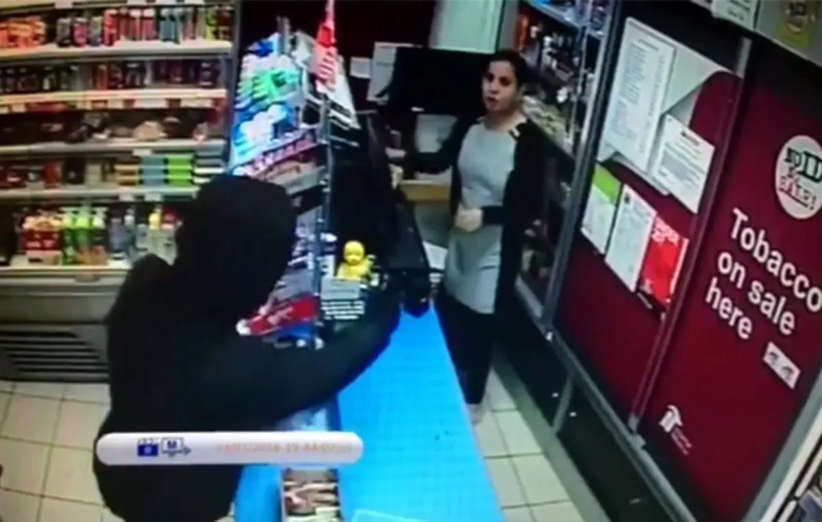 یک دزد مسلح در شهر دارلنگتون قصد دزدی از یک فروشگاه را داشت که با شجاعت فروشنده زن رو به رو شد.