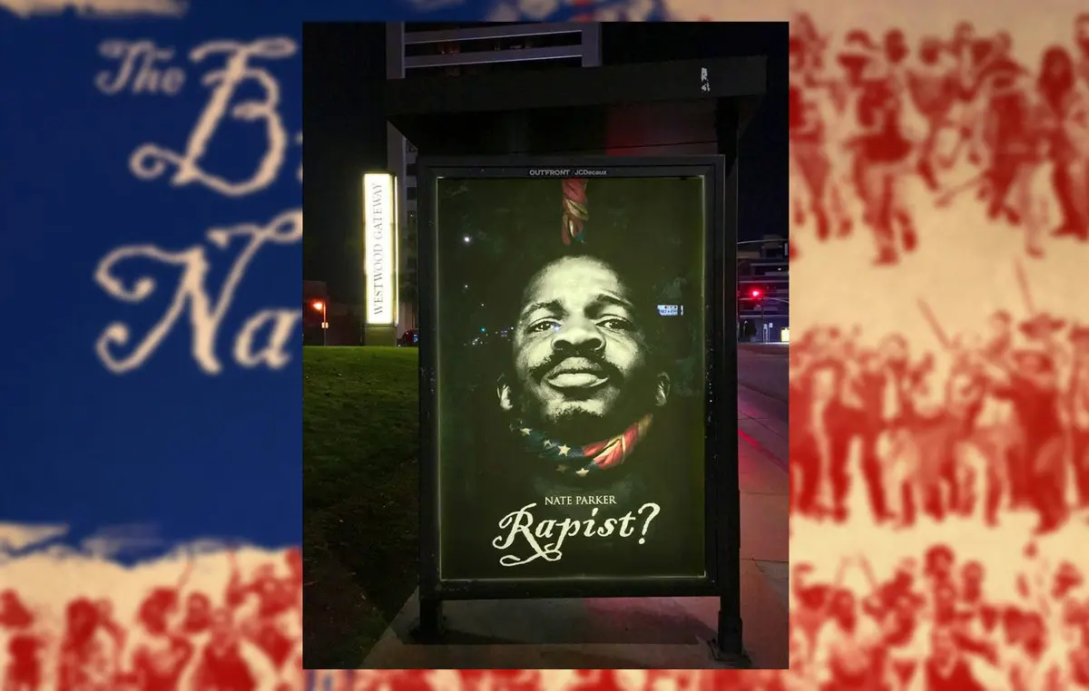 رکنا: پوسترهای تبلیغاتی دستکاری شده فیلم «تولد یک ملت» در اعتراض به پرونده تجاوز قدیمی خالق فیلم، در نقاط مختلف لسآنجلس پدیدار شدند.