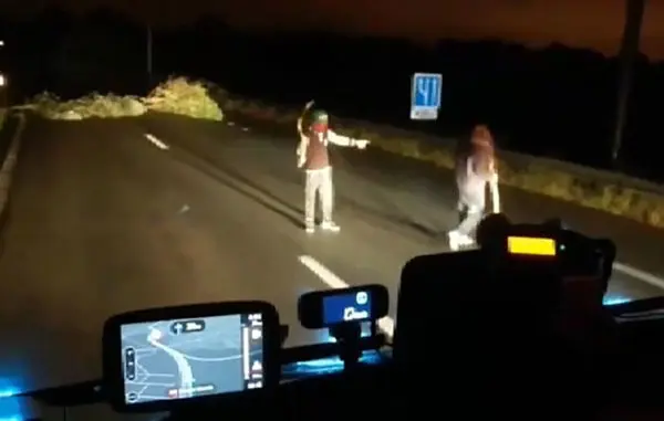 رکنا: فیلم لحظات وحشتناک از سد کردن جاده منتهی به بندر کاله توسط مهاجران مسلح با چوب و چماق منتشر شده که در آن کامیونی برای سوار شدن پناهندگان به زور متوقف شده است.