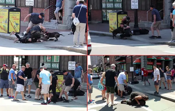 سگ درنده ای سگ کوچولویی را در مقابل دیدگان وحشت زده صاحب اش در یکی از خیابان های بوستون مورد حمله وحشیانه قرار داد. صاحب سگ کوچک که سعی داشت حیوان اش را از چنگال حیوان درنده خوی وحشی نجات دهد خود نیز دچار آسیب دیدگی شد و خون آلود و کبود گوشه ای نقش زمین شد. فیلم صحنه های دلخراش این حمله ناعادلانه توسط رافائل فورتین که همراه نامزدش برای حضور در کنسرت کلدپلی در این شهر حضور داشته گرفته شده است. این زوج صدای فریاد های کمک خواهی زن جوان را شنیده و متوجه این اتفاق شده بودند. پیت بول گردن حیوان کوچولو را به دندان گرفته بود که منجر به فریادهای دلخراش صاحب اش شده بود که البته طبق گزارش رسانه ها به رغم حمله وحشیانه پیت بول، آسیب های جدی به این حیوان وارد نشده است. جمیعیت حاضر سعی در جدا کردن این دو سگ داشتند که در نهایت پیت بول حریف اش را رها می کند. افسران پلیس بعد از خاتمه حادثه در محل حاضر شدند. این کلیپ در تاریخ 31 ژوئیه در یوتیوب آپلود شده و بیش از 200 هزار بار مشاهده شده است. صاحب سگ کوچک نیز برای مداوا به بیمارستان انتقال داده شد.