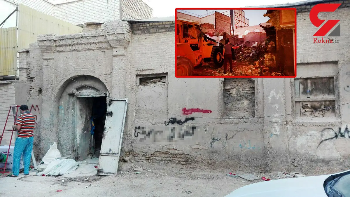 خانه فساد مردان عراقی با لودر در آبادان تخریب شد + عکس عملیات تخریب