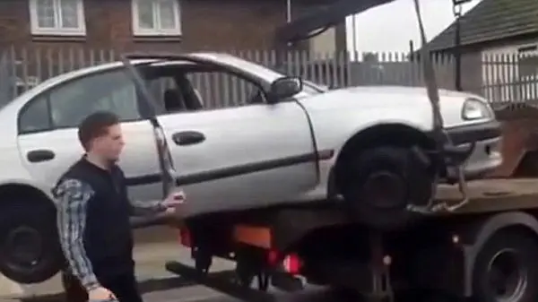 رکنا: رکنا: فیلمی از تلاش راننده ایرلندی منتشر شده که سعی دارد خودروی اش را از پشت یدک کش که توسط پلیس توقیف شده پایین بیاورد.