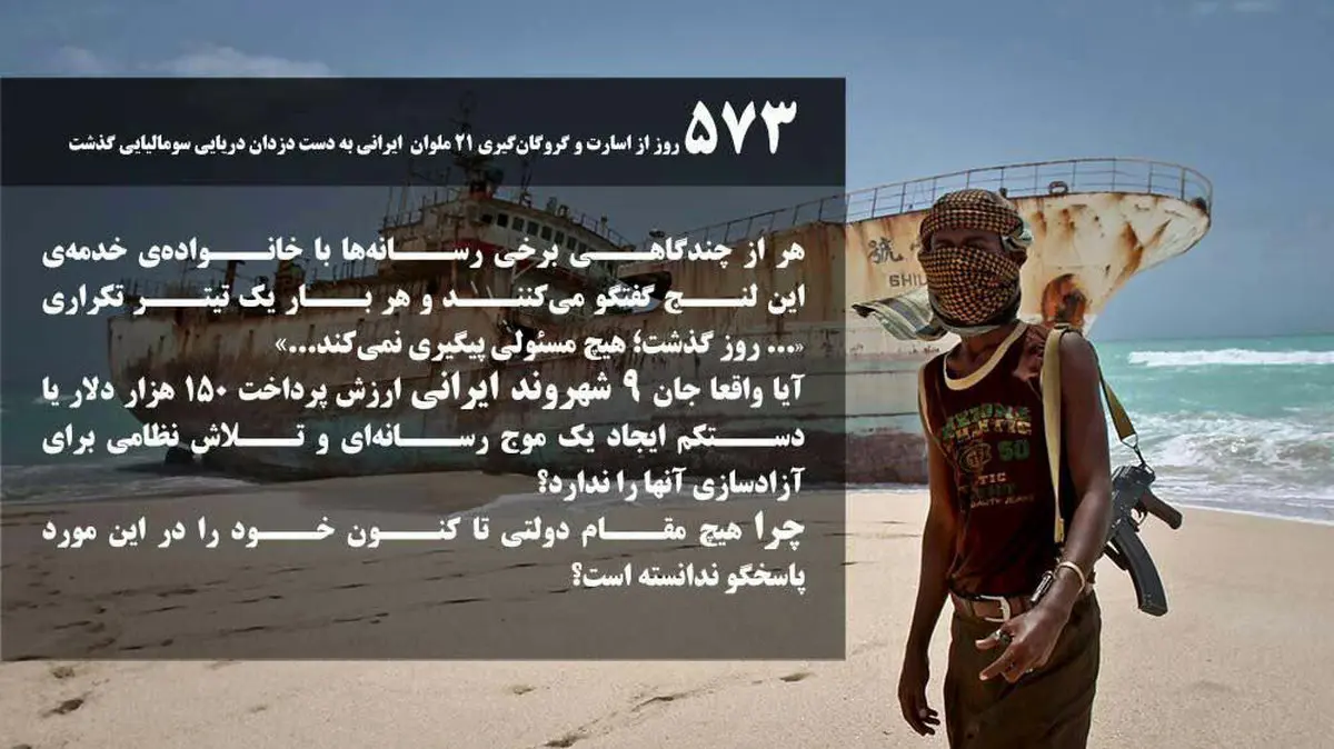 رکنا:20 ماه از اسارت ملوانان ایرانی در دستان دزدان دریایی سومالی می گذرد گروهی مرده اند و گروهی موفق به فرار اما بازماندگان این اسارت در شرایط اسفناکی بسر می برند.