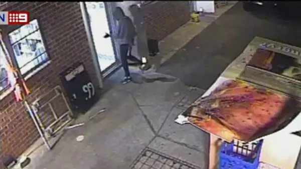 تصاویری که می‌بینید توسط دوربین مداربسته جلوی یک مغازه پیتزا فروشی در بریسبین استرالیا گرفته شده‌اند.