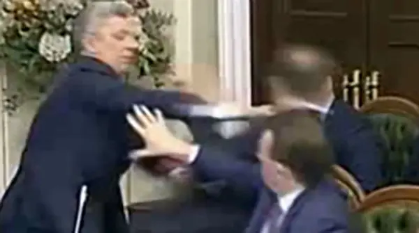 این اتفاق در نشست شورای مشورتی در پارلمان اوکراین، زمانی روی داد که " یوری بویکو" رئیس حزب مخالف در کنار"اولگ لیاشکو" رئیس حزب رادیکالی نشسته بود.