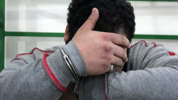 دستبند پلیس بر دستان متهم تحت تعقیب در کازرون