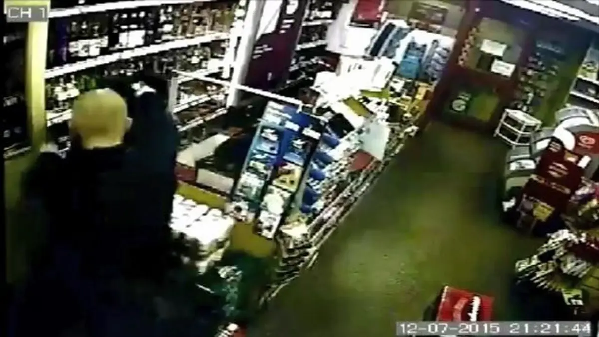 رکنا: دوربین مدار بسته فروشگاهی لحظه سرقت مردی را از این مکان به تصویر کشیده که نشان می دهد چگونه فروشنده برای نجات زندگی اش التماس می کند.