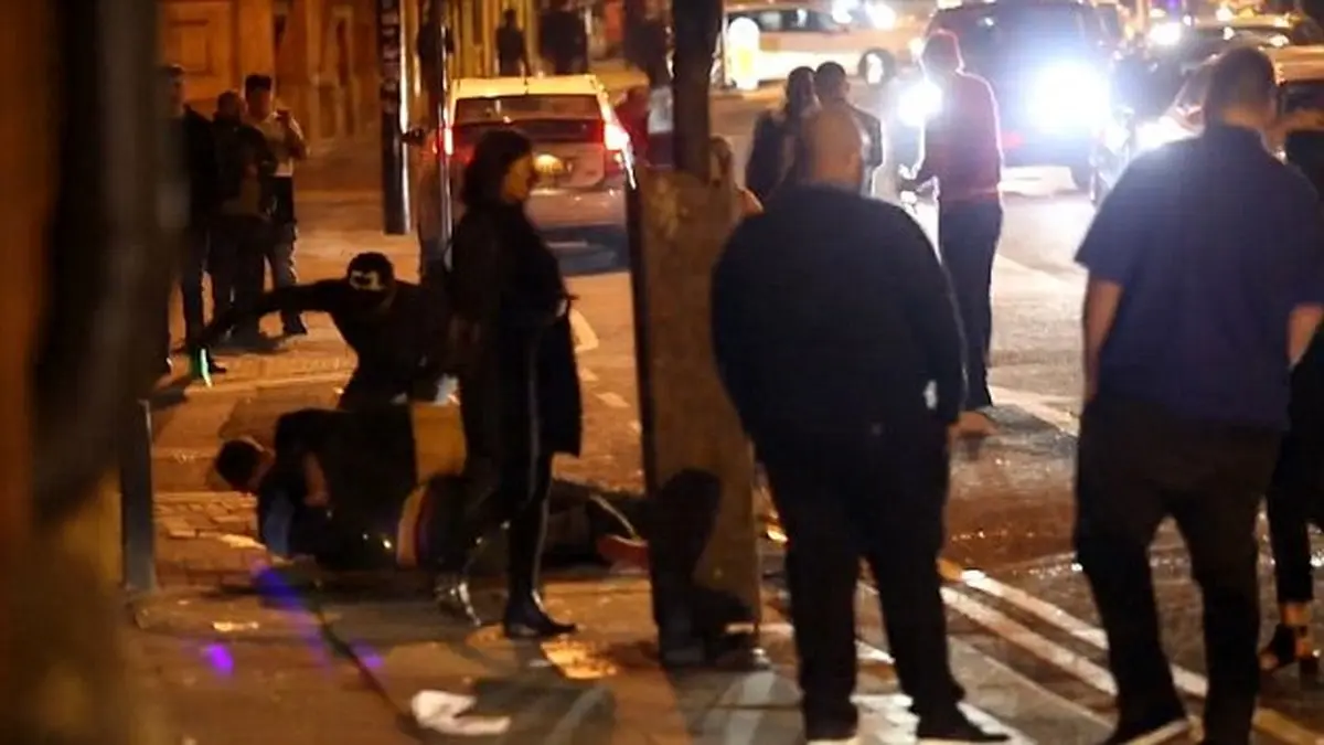 ساعت 4:30 روز یکشنبه مرد جوانی از سوی گروهی عیاش که به بهانه کریسمس در خیابانی و اقع در منچستر به شادی مشغول بودند مورد حمله قرار گرفت. قربانی بعد از اینکه در پیاده رو نقش زمین شد با بطری شکسته ای مورد اصابت چندین ضربه قرار گرفت. تماشاچیان با دیدن صحنه های درگیری خون بار فریاد می زدند. پلیس Police ضمن صحبت با مردی که این فیلم را گرفته تحقیقات اولیه خود را برای شناسایی ضاربان و همچنین قربانی آغاز کرده است. از دید پلیس این درگیری بسیار جدی بوده و نیاز به بررسی بیشتر دارد. در خبر از میزان جراحت وارده به قربانی و انگیزه درگیری مطلبی درج نشده است.برای ورود به کانال تلگرام ما کلیک کنید.
