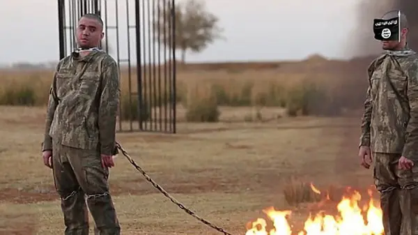 تروریستهای داعش ISIS دو سرباز ترکیه را که پیش از این دستگیر کرده بودند در آتش سوزاندند و ویدئوی این اقدام وحشیانه را منتشر کردند.
