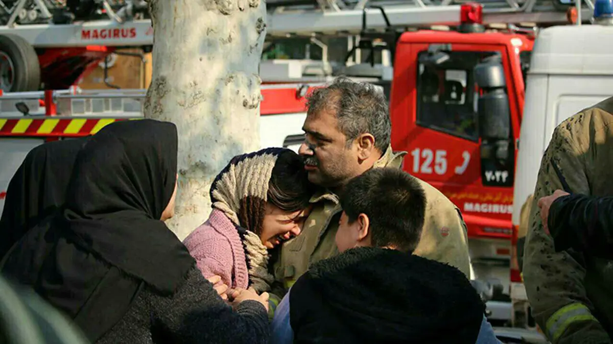 رکنا: دختر جوان که گمان می کرد پدر آتش نشانش زیر آوار ساختمان پلاسکو جان باخته است، بعد از دیدن پدرش در محل حادثه او را در آغوش گرفت و گریست.