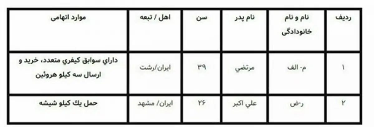 لازم به ذکر است تقاضای عفو متهمین جدول ذیل در دو مرحله مطرحشده بود که پس از انجام بررسیهای لازم و عدم احراز شرایط، توسط کمیسیون مرکزی عفو و بخشودگی مورد پذیرش واقع نشد.برای ورود به کانال تلگرام ما کلیک کنید.
