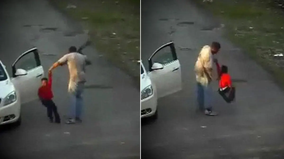 ضرب و شتم کودک 7 ساله با کمربند در خیابان/ این فیلم اشک همه را در آورد+فیلم و عکس