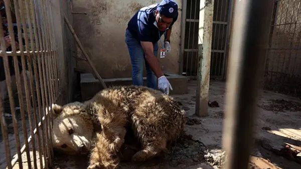 این تیم دامپزشکی حرفهای در باغ وحش موصل، خرس و شیر گرسنه را مورد معاینه قرار دادند و با غذا دادن به آنها توانستند جان دوبارهای به آنها بدهند.