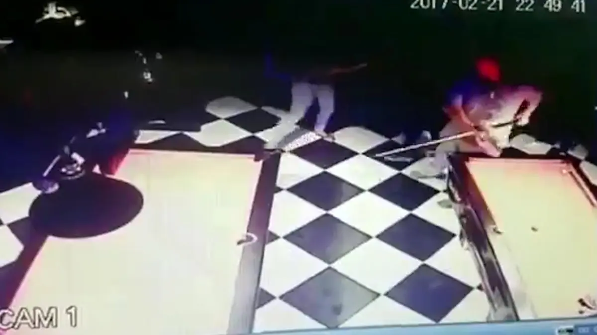 ویدئویی که مشاهده می کنید صحنه دعوا و مشاجره میان چند تن در یک باشگاه بیلیارد در آفریقای جنوبی را نشان می دهد که در ثانیه های پایانی ویدئو یکی از افراد حاضر چوب بیلیارد را در چشم مرد جوان فرو می کند.برای ورود به کانال تلگرام ما کلیک کنید.