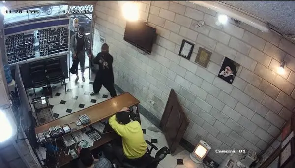 3 مرد داخل صرافی سرگرم کار بودند که با دیدن این صحنه شوکه شدند که دزدان مسلح که نقاب به صورت داشتند ابتدا با صدای بلند از 3 مرد داخل صرافی می خواهند که روی زمین بخوابند که در این لحظه سعید که صاحب صرافی بود صندلی چرخ داری را به سمت مسیر ورودی پشت میز کار همکارانش می گذارد که مانع کار دزدان شود.