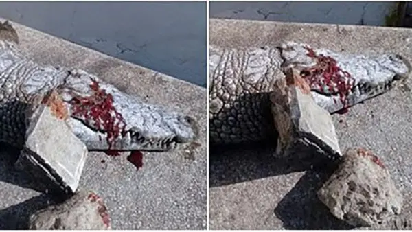 کروکودیل باغ وحش را با سنگ کشتند +عکس