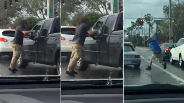 به گزارش گروه ترجمه رکنا، راننده بی ام دبلیویی در یکی از خیابان های فلوریدا پشت چراغ قرمز از خودرویش پیاده شد و با مشت شیشه وانت فوردی را شکست و اسپری فلفل روی صورت راننده زد. راننده وانت نیز با باز کردن در ماشین سعی داشت وی را دور کند تا بتواند از خودرو پیاده شود. در حینی که همچنان به سمت وی اسپری فلفل زده می شد به سمت پشت وانت رفت تا وسیله ای برای دفاع از خود بیاورد. راننده بی ام دبلیو با دیدن چوب در دست راننده وانت بسرعت بسمت ماشینش رفت و حرکت کرد. این درگیری ماه گذشته در نزدیکی ساحل دیتونا، فلوریدا اتفاق افتاد و کمتر از 45 ثانیه به طول انجامید، اما در همین مدت کوتاه بین دو راننده تنش شدیدی بوجود آمد. بر اساس اظهارات یکی از شاهدان راننده وانت بر سر سرنشین سمت شاگرد ماشین بی ام دبلیو فریاد می کشیده و وی را تهدید به کتک زدن می کرده است، اما با این وجود علت اصلی این درگیری مشخص نشده است.برای ورود به کانال تلگرام ما کلیک کنید.