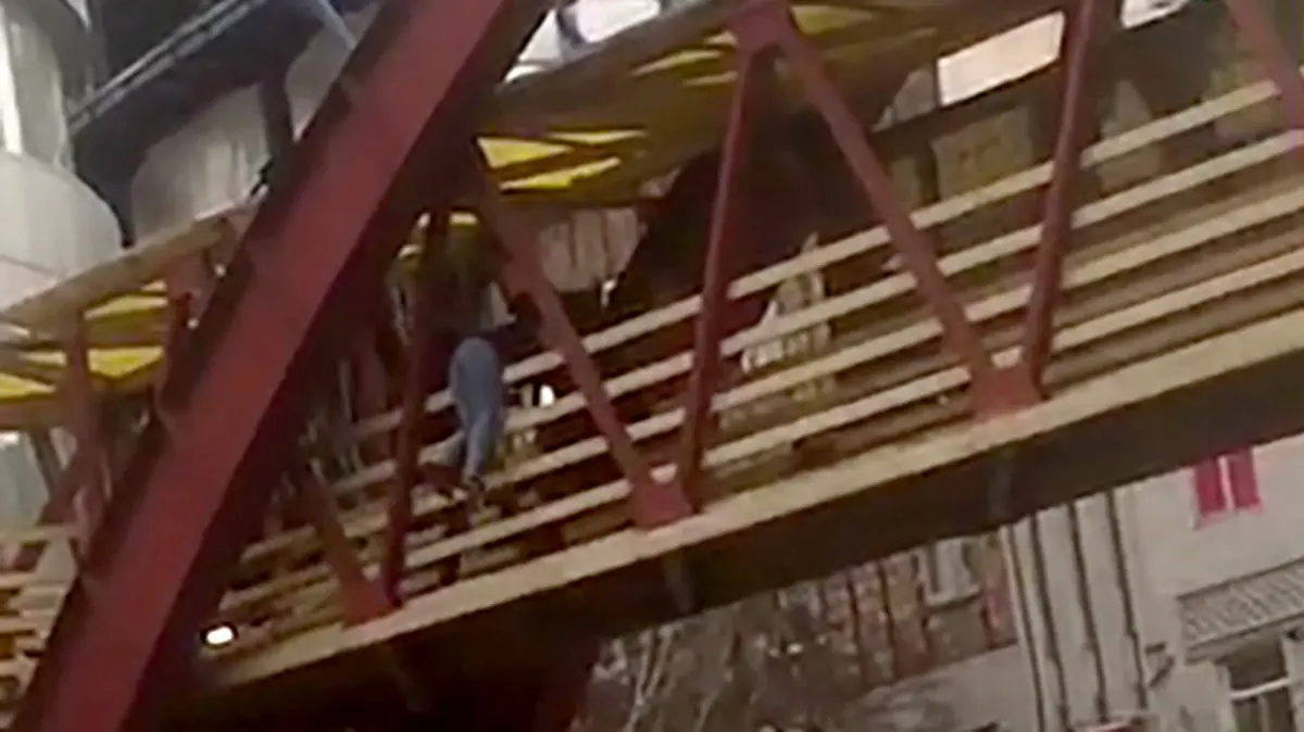 فیلم لحظه اقدام به خودکشی زن تبریزی از پل عابر پیاده+تصاویر