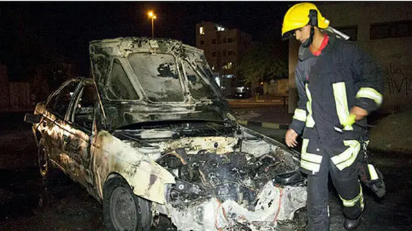 آتش سوزی عمدی پژو 405 در بندرعباس + تصاویر