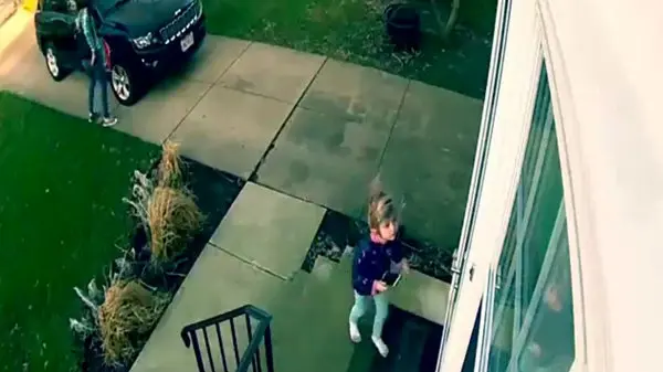 وزش باد شدید دختر بچه ای را که در حال باز کردن در منزل بود به یک سمت پرتاب کرد.برای ورود به کانال تلگرام ما کلیک کنید.