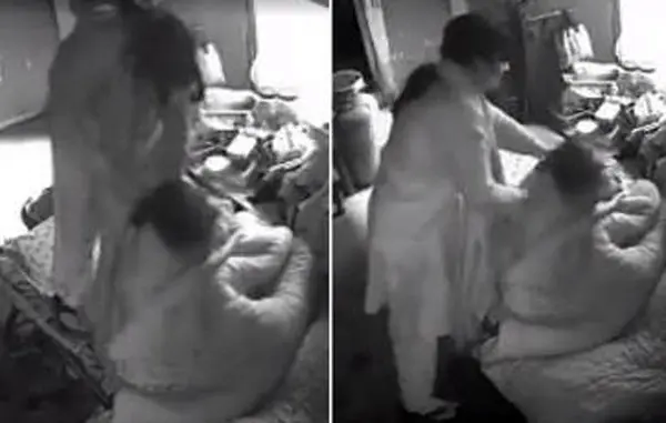 در فیلم گرفته شده توسط این کودک 6 ساله مشاهده شد که زن سالخورده زیر پتویی خوابیده و عروسش به او هجوم برده تا خفهاش کند.