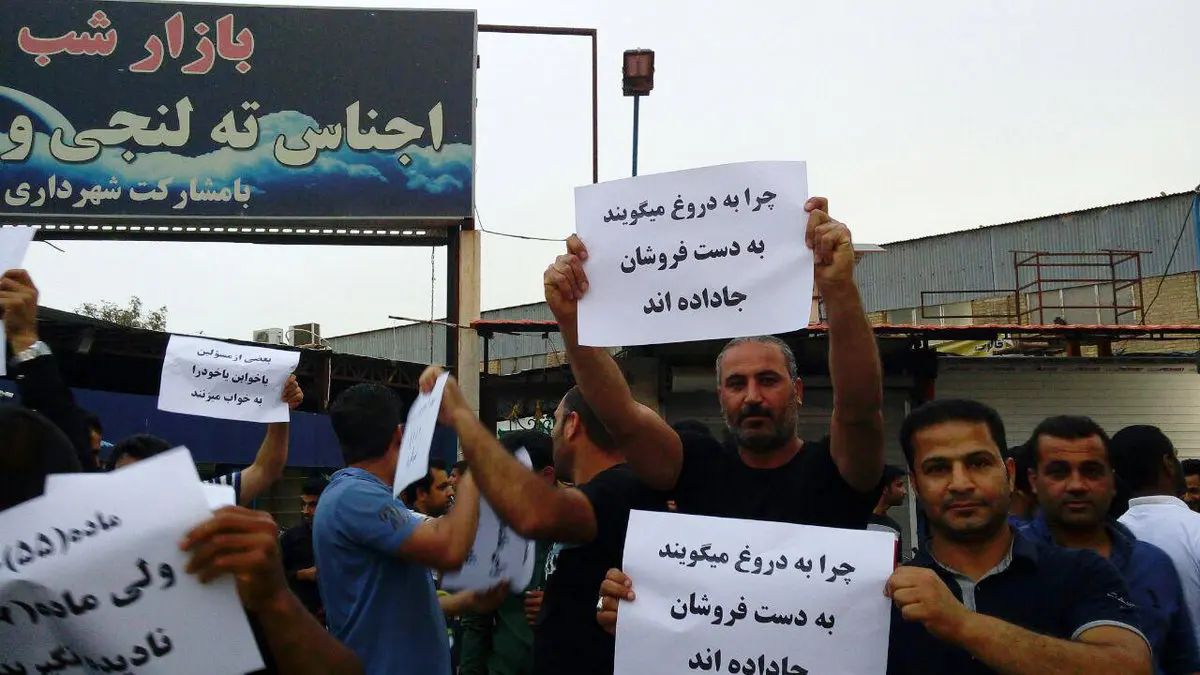 تجمع اعتراض آمیز دستفروش های بازار ته لنجی های آبادان+فیلم وعکس