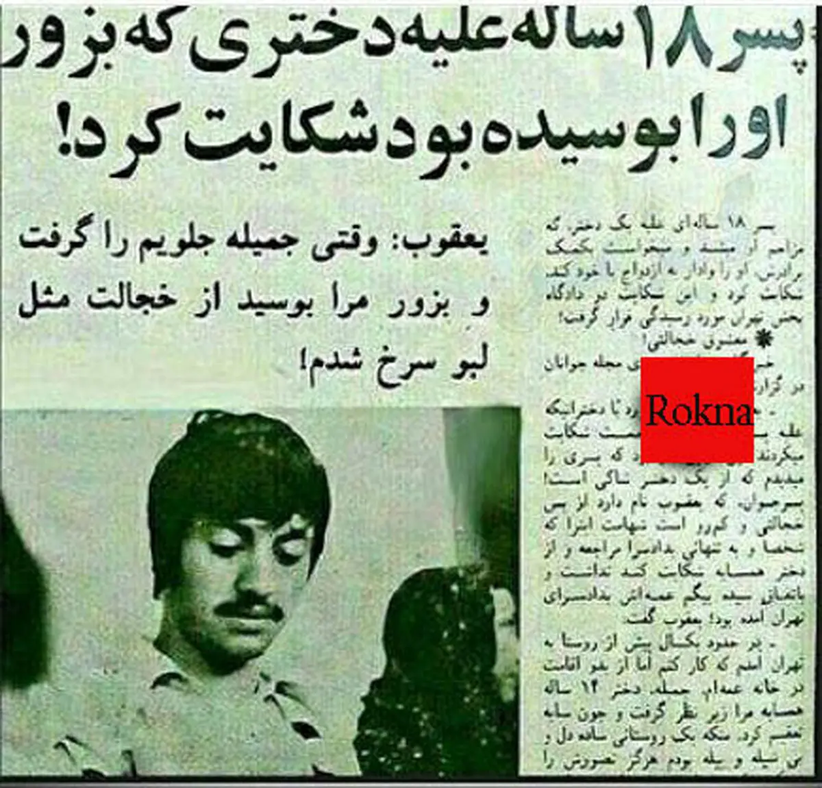 بنا به گزارش این مجله، این پسر، که یعقوب نام داشت، زمانی که به خانه عمه اش رفته بود، متوجه می شود که دختر 14 ساله همسایه عمه اش که جمیله نام داشت به وی نظر دارد و او را زیر نظر قرار داده است. و در نهایت او را می بوسد.