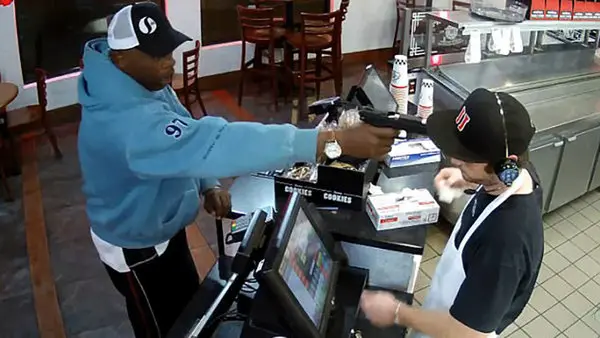 به گزارش گروه ترجمه رکنا، سارق مسلح پیشانی صندوقدار یک ساندویچی در کانزاسسیتی، میزوری را برای سرقت Stealing پول نشانه گرفت، اما صندوقدار با کمال خونسردی پول های دخل را تحویل سارق داد. دوربین مدار بسته تمام این لحظات را به ثبت رساند. در طول این سرقت مسلحانه در ساندویچی جیمی جان صندوقدار با حفظ آرامش این شرایط استرس زا را مدیریت کرد. این حادثه Incident روز چهارشنبه ساعت 9 شب در کانزاس سیتی رخ داد.برای ورود به کانال تلگرام ما کلیک کنید.