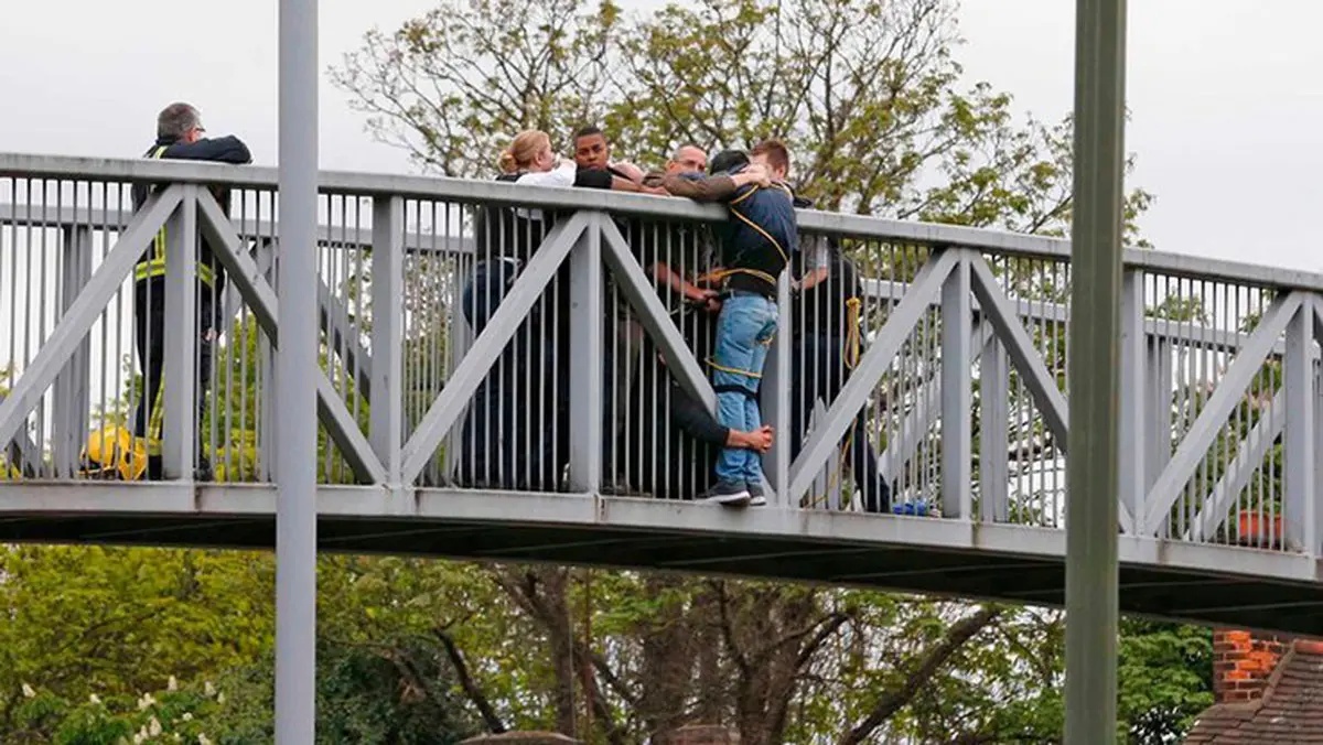 در حالی که تعداد اندکی از مردم در زیر پل Bridge عابر حضور داشتند برخی دیگر نیز با کمک تلفن های هوشمند خود از این صحنه فیلم و عکس تهیه کردند. این حادثه Incident باعث شد تا خیابان منتهی به این پل عابر برای چند ساعت توسط پلیس Police لندن بسته شود. سرانجام نیروهای آتش نشانی با کمک یک بالابر هیدرولیک این مرد را به پایین پل عابر منتقل و از خودکشی وی جلوگیری کردند.