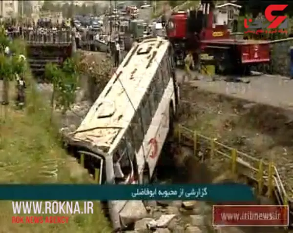 فیلم حادثه سقوط اتوبوس دانش آموزان دختر به کانال در اتوبان یادگار امام + اسامی مصدومان و تصاویر