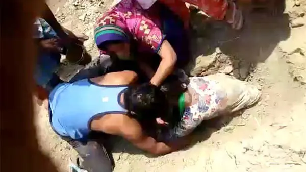 کلیپ منتشره نشان می دهد که چند مرد دختر جوان نگون بخت را از چاله ای در روستای گوویندپور در استان بیهار در شرق هند پس از گذشت 2 ساعت از دفن شدن در چاله ، با تلاش خستگی ناپذیر بیرون می آورند و جانش را نجات می دهند.
