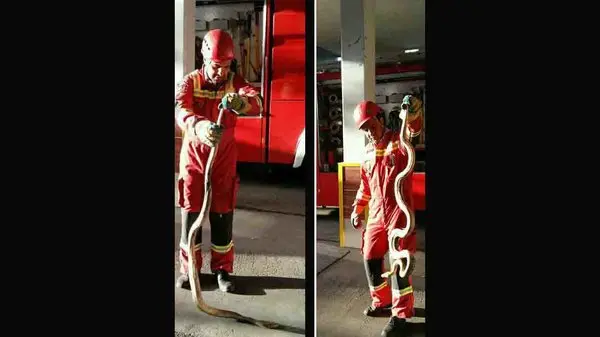 رکنا: صبح امروز مار دو متری آتش نشانان ایستگاه 53 پایتخت را به دردسر انداخت.