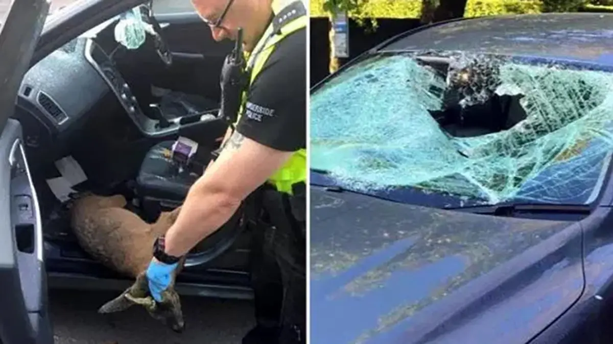 گوزن وحشی با پرش بی موقع بر شیشه خودروی در حال حرکت در شمال شرقی لینکون شایر در بریتانیا جان دختر 10 ساله را گرفت.